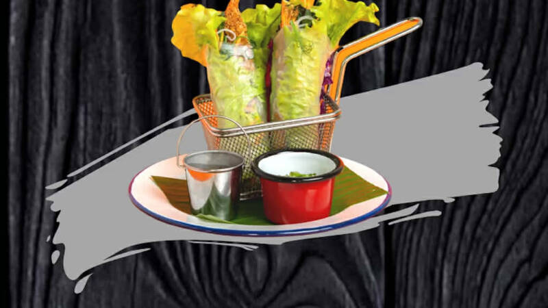 Tuoreet käsinkäärityt riisipaperirullat thai yrtteillä, riisinuudeleilla ja valitsemallasi täytteellä