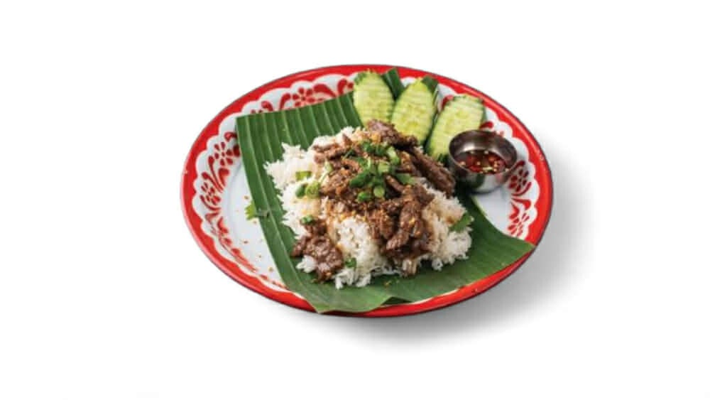 Wokattua naudanlihaa sekä valkosipulia, pippuria, soijaa, osterikastiketta ja korianteria (G,L)